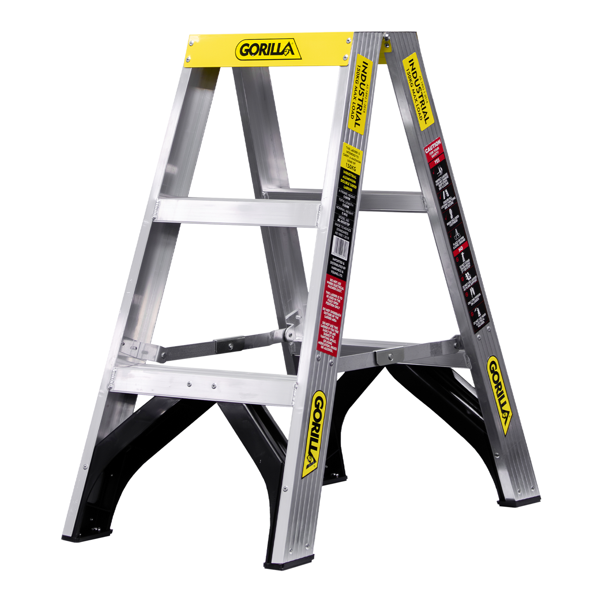 The Gorilla Silverback Double Sided Ladder is a fully welded ladder constructed with heavy duty aluminium, providing a 180kg max load rating. With fully welded rungs, this ladder has lasting strength along with splayed rungs for stability and