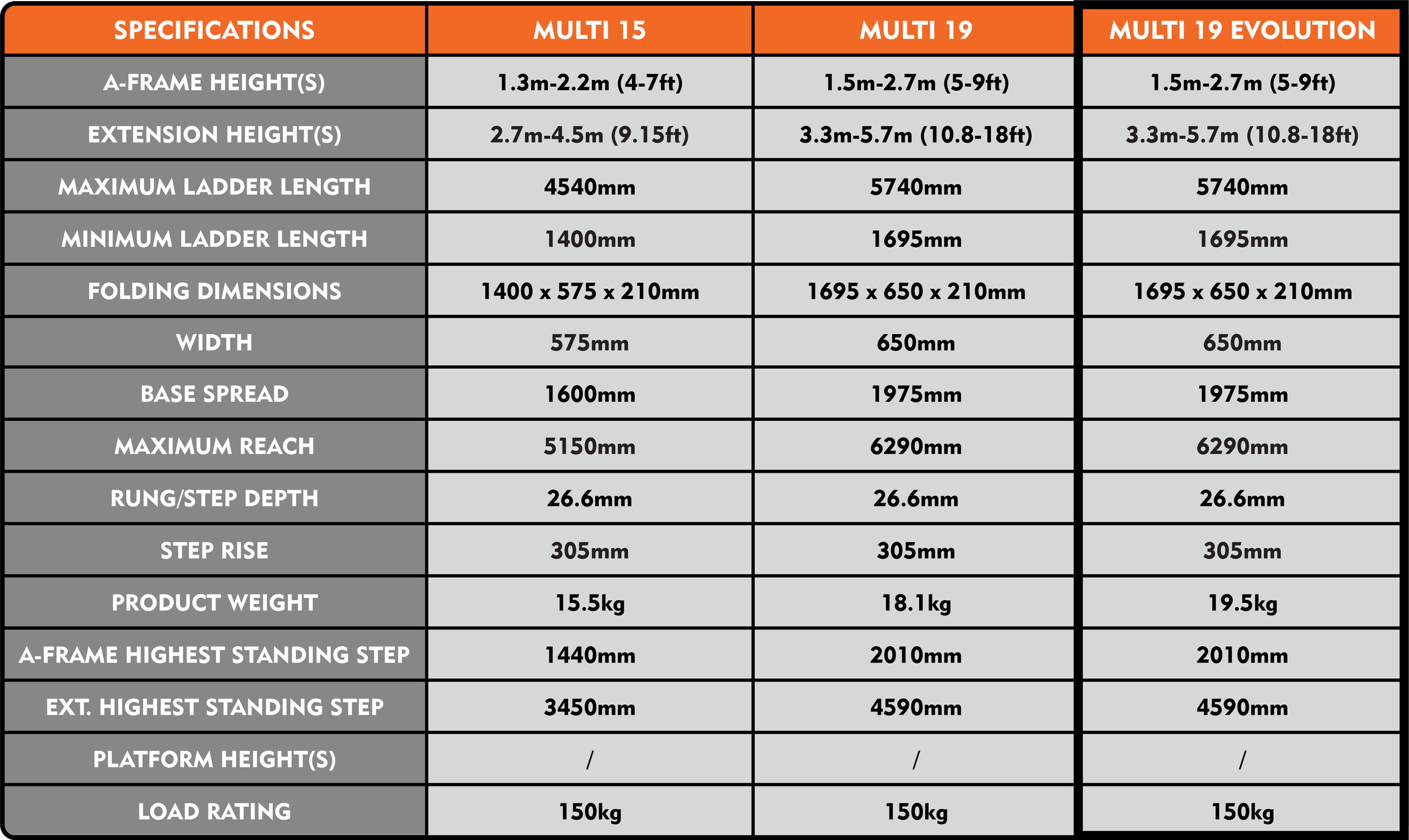 150kg Max Load Rating - Designed and Tested to AS1892.1:2018 Safety Standards